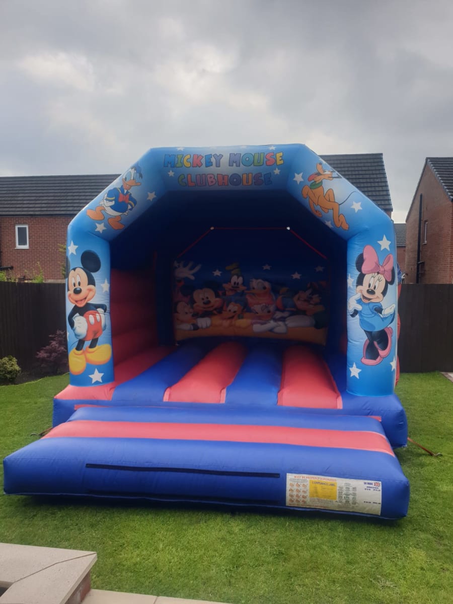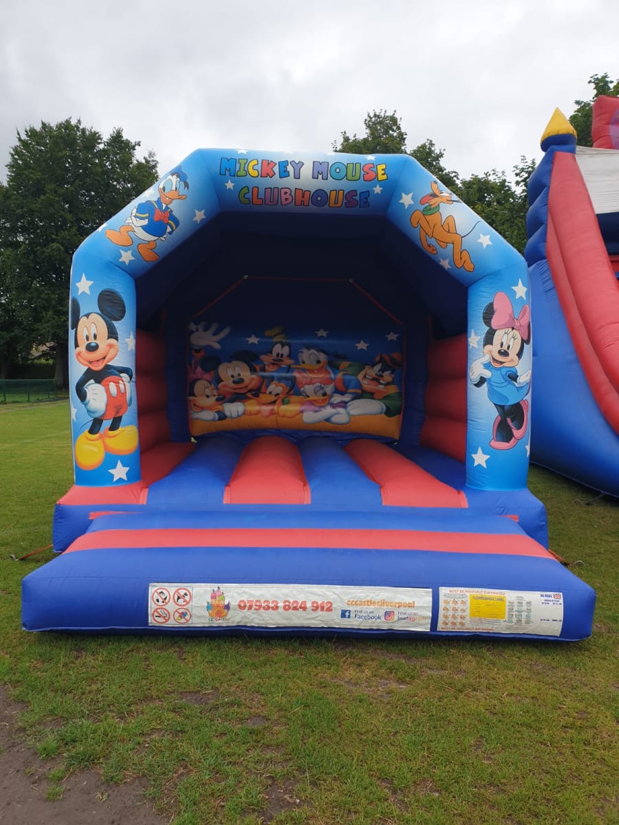 Looking to hire a bouncy castle near you? We offer our Mickey Mouse Bouncy Castle 12x15ft in Liverpool, Huyton, Widnes, Knotty Ash, Knowsley Village, Pagemoss, Dovecot, and Old Swan. Our service ensures a hassle-free setup and takedown, so you can focus on enjoying the day. Our team is committed to providing a clean, safe, and fun inflatable experience for all attendees.