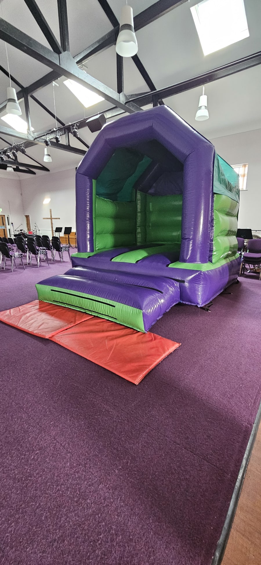 Plain Purple and Green Bouncy Castle Hire Liverpool!