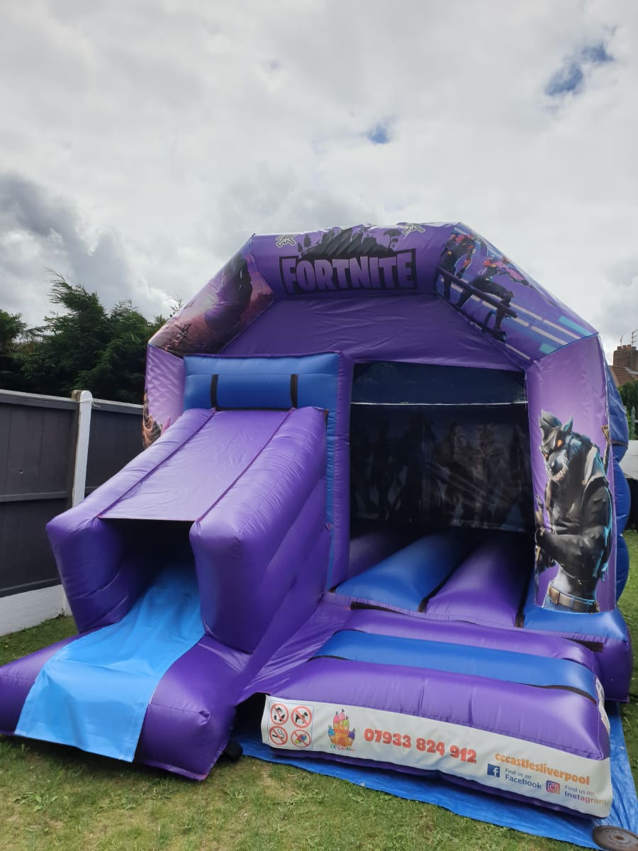 Our Fortnite Slide Bouncy Castle 12x17ft in Huyton, West Derby, Norris Green, Anfield, Croxteth, Knotty Ash, Widnes, St Helens, Wirral, Runcorn, Kirkby service offers convenience and reliability. No need to worry about setup or takedown; our professional team handles it all. We offer flexible hire options including overnight hire and multi-day deals, allowing you to maximize the fun.