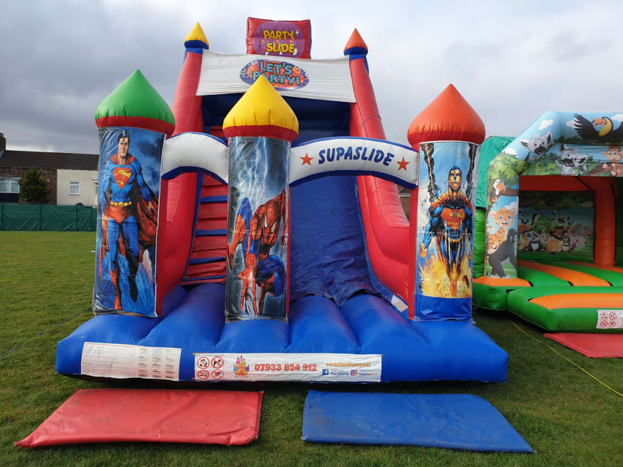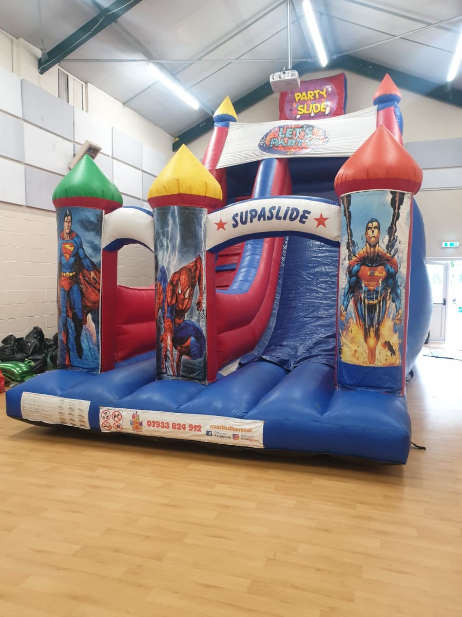 If you’re looking for bouncy castle hire Superheroes Mega Slide in Liverpool, Widnes, St Helens, the Wirral, Runcorn, Kirkby, Speke, Knotty Ash, West Derby, Allerton, Croxteth, Garston, Stockbridge Village, or Huyton, look no further. Our services are designed to cater to these areas, ensuring you have access to top-quality entertainment right at your doorstep.